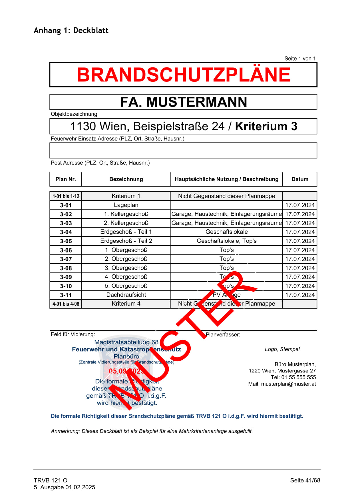 NACH ERHALT DES VON DER FW VIDIERTEN BRANDSCHUTZPLAN-DECKBLATTES: